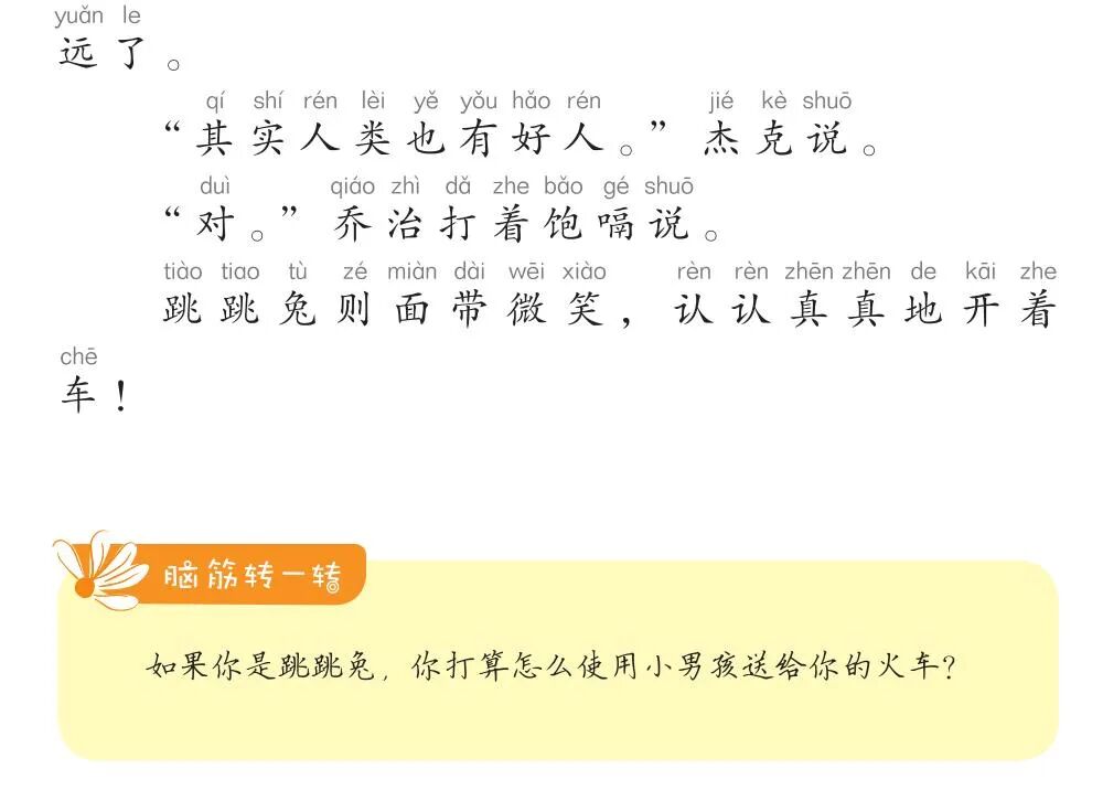 每篇文末特有“脑筋转一转”板块,有效提升阅读入门阶段的记忆、归纳、分析能力,开放式问题,帮助孩子探索更多人生可能。